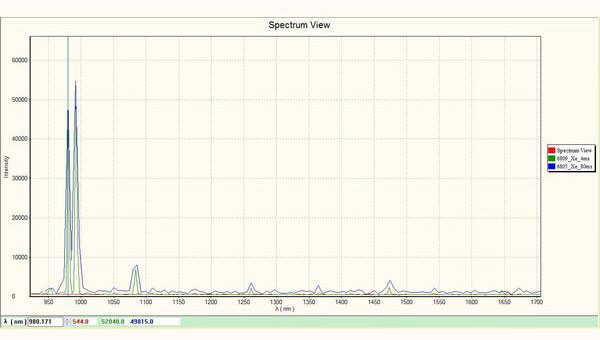 標準氙燈光譜測試對比(相同的狹縫和光譜範圍時,256pixels的光學解析度優於128pixels)